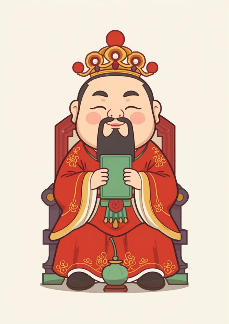 第二、持物與坐騎:右手多持「玉笏」或「藥葫蘆」、「藥罐」—— 藥葫蘆是保生大帝最具識別性法器,標記醫藥神身分。 左手或持寶劍、或持拂塵。 座下必配「黑虎將軍」——源自「醫虎喉」典故,與武財神趙公明的黑虎不同, 保生大帝的虎爺多作溫順護法相,而非凶猛戰虎。