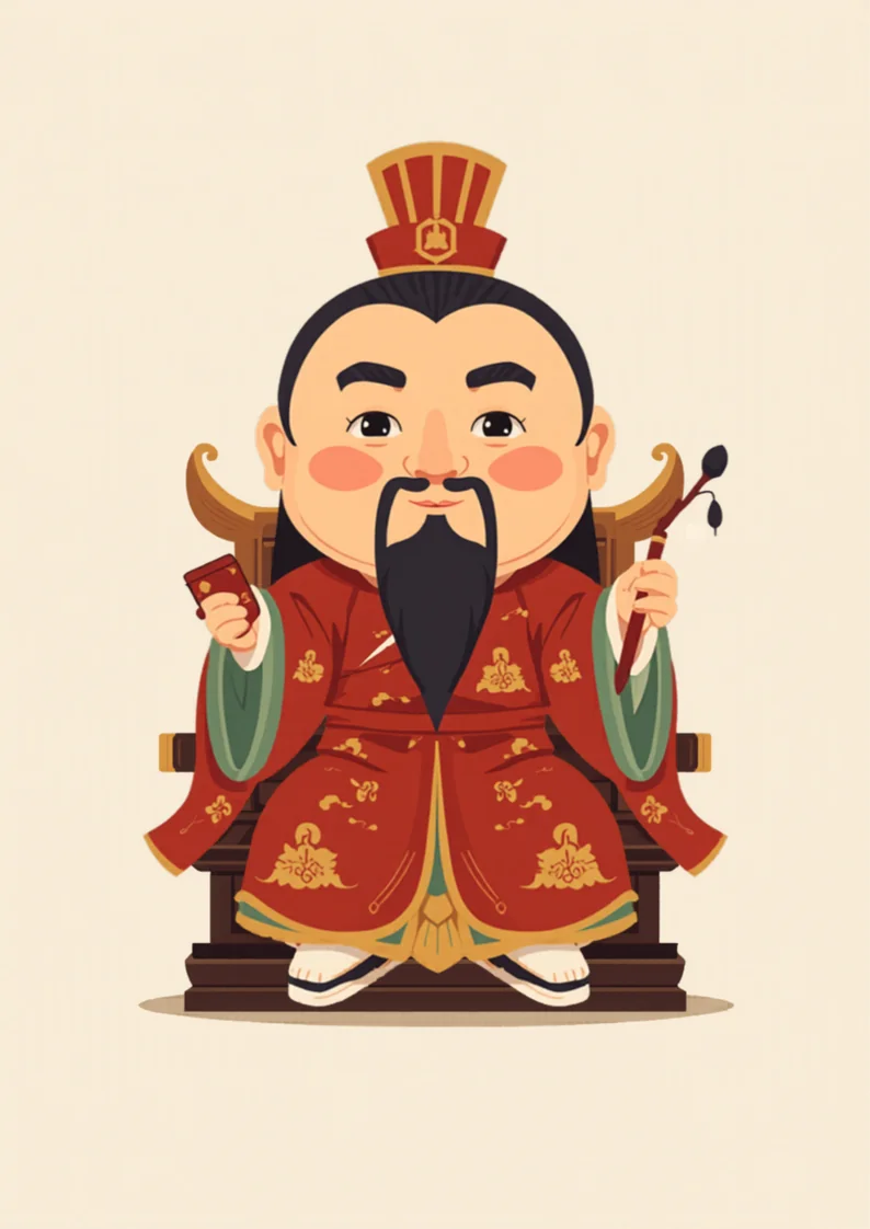 第三、持物:最關鍵的辨識點——一手執毛筆(或朱筆),一手捧書卷(或記錄本)。 毛筆是文昌帝君獨特的法器,象徵祂「以筆點榜、定人間功名」。有些神像前供奉 「天聾」「地啞」兩位侍童——天聾捧硯、地啞持筆,是文昌的左右護法。